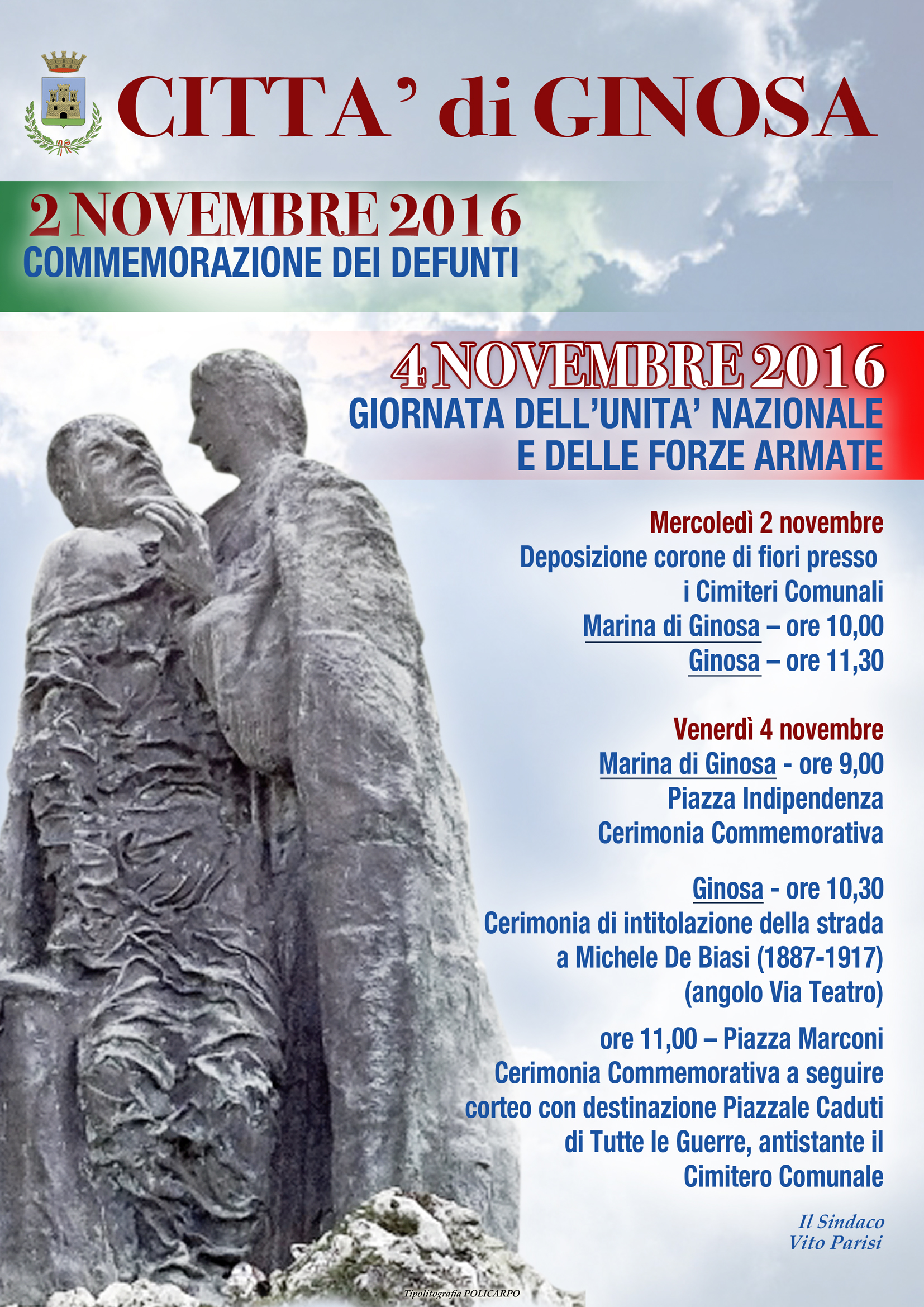 Commemorazione dei defunti e Giornata dell'Unità Nazionale e delle Forze Armate.