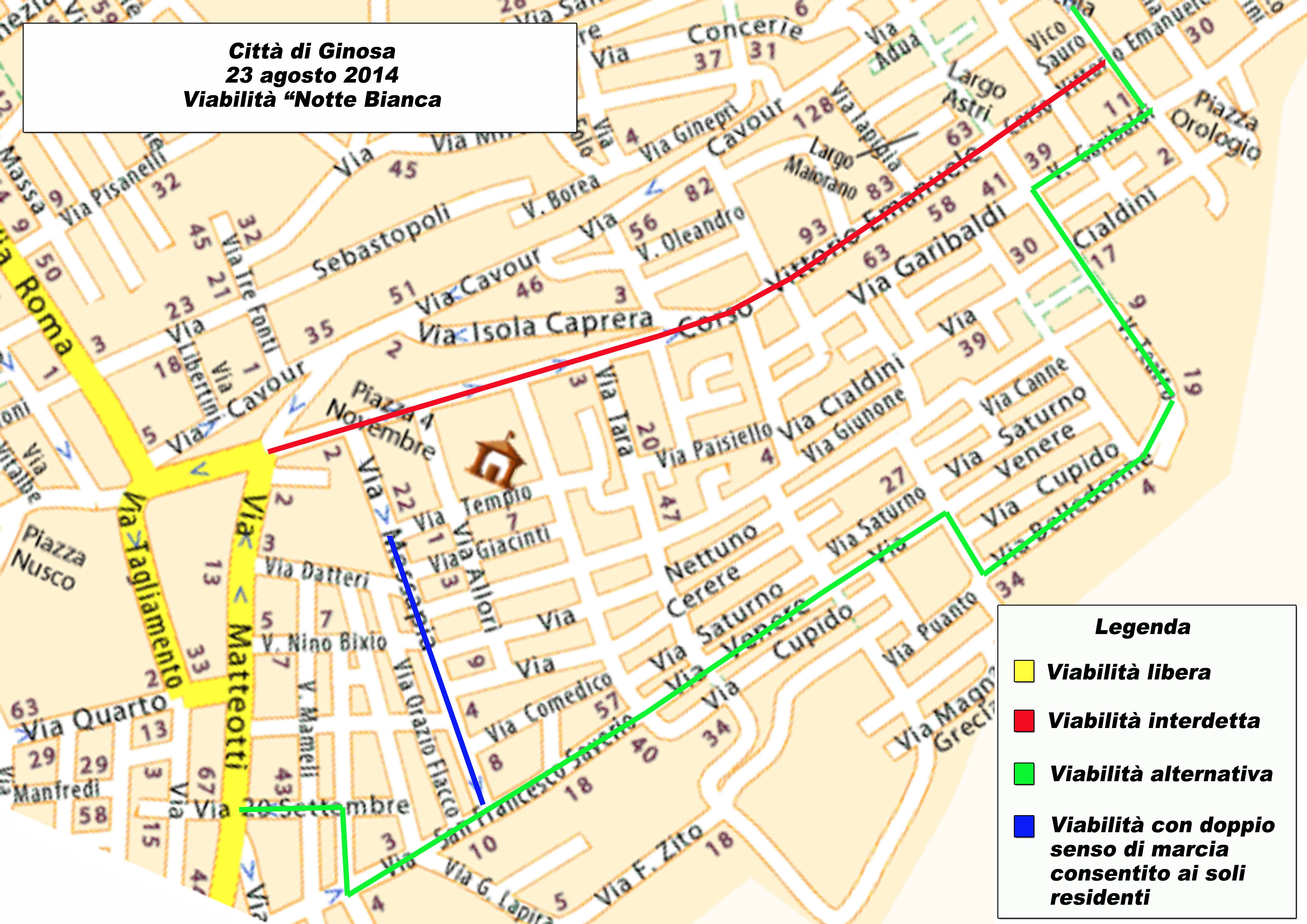 L'auspicio è quello di vedere nuovamente le strade della nostra città invase da persone in festa per trascorrere - ha commentato il Sindaco Dott. Vito De Palma - una notte spensierata di puro divertimento in tranquillità e sicurezza."La Notte Bianca è un'occasione per riscoprire la città e le sue peculiarità commerciali, turistiche e di intrattenimento" – ha sottolineato l'Assessore alla cultura Mario Toma.Con questa iniziativa, infatti, il Comune di Ginosa, ha l'obiettivo di far conoscere la rete del commercio locale, senza dimenticare il proprio patrimonio artistico ed enogastronomico.