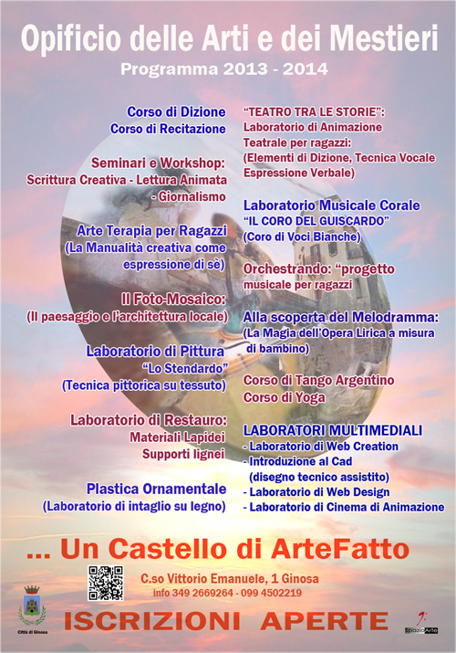 L'Opificio delle Arti e dei Mestieri, la Compagnia teatrale Anna De Bartolomeo e i docenti dell'I.S.T.A. (Istituto Studi Teatro d'Arte), propongono un Corso di Recitazione aperto a tutti, con un programma che va dall'insegnamento di elementi di dizione, alla tecnica emotiva e di espressione corporea, biomeccanica, passando per l'interpretazione e la lettura drammaturgica. Un'occasione per trasformare il momento d'incontro con il Teatro, in maggiore conoscenza di sè e delle proprie potenzialità, divertendosi e appassionandosi!