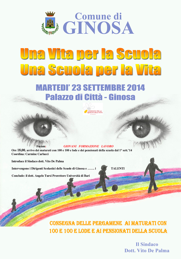 Descrizione La cerimonia si svolgerà presso l'Aula Consiliare del Palazzo Comunale domani, 23 settembre, alle ore 18, consegna delle pergamene ai maturati con 100 e 100 lode e ai pensionati della scuola