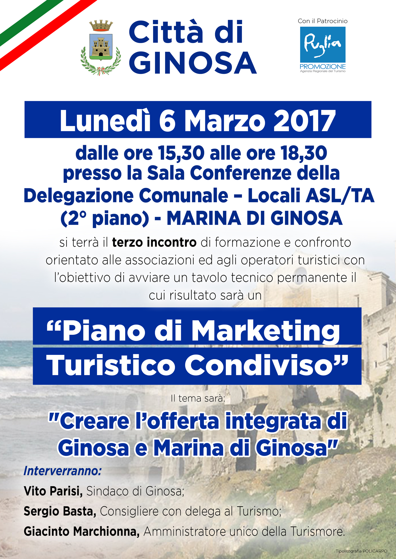 Descrizione Lunedì 6 marzo 2017, dalle ore 15,30 alle ore 18,30, a Marina di Ginosa, il terzo incontro